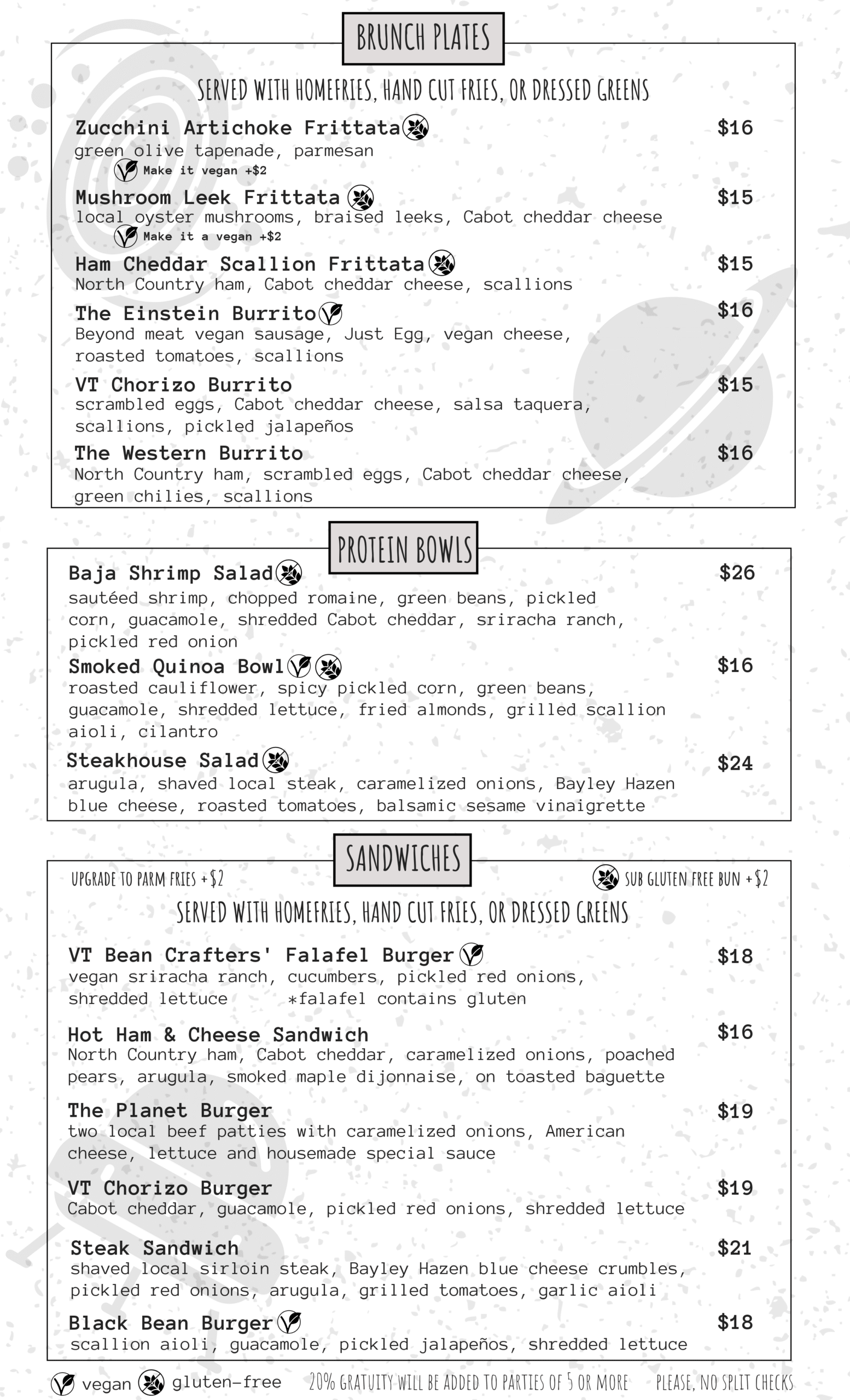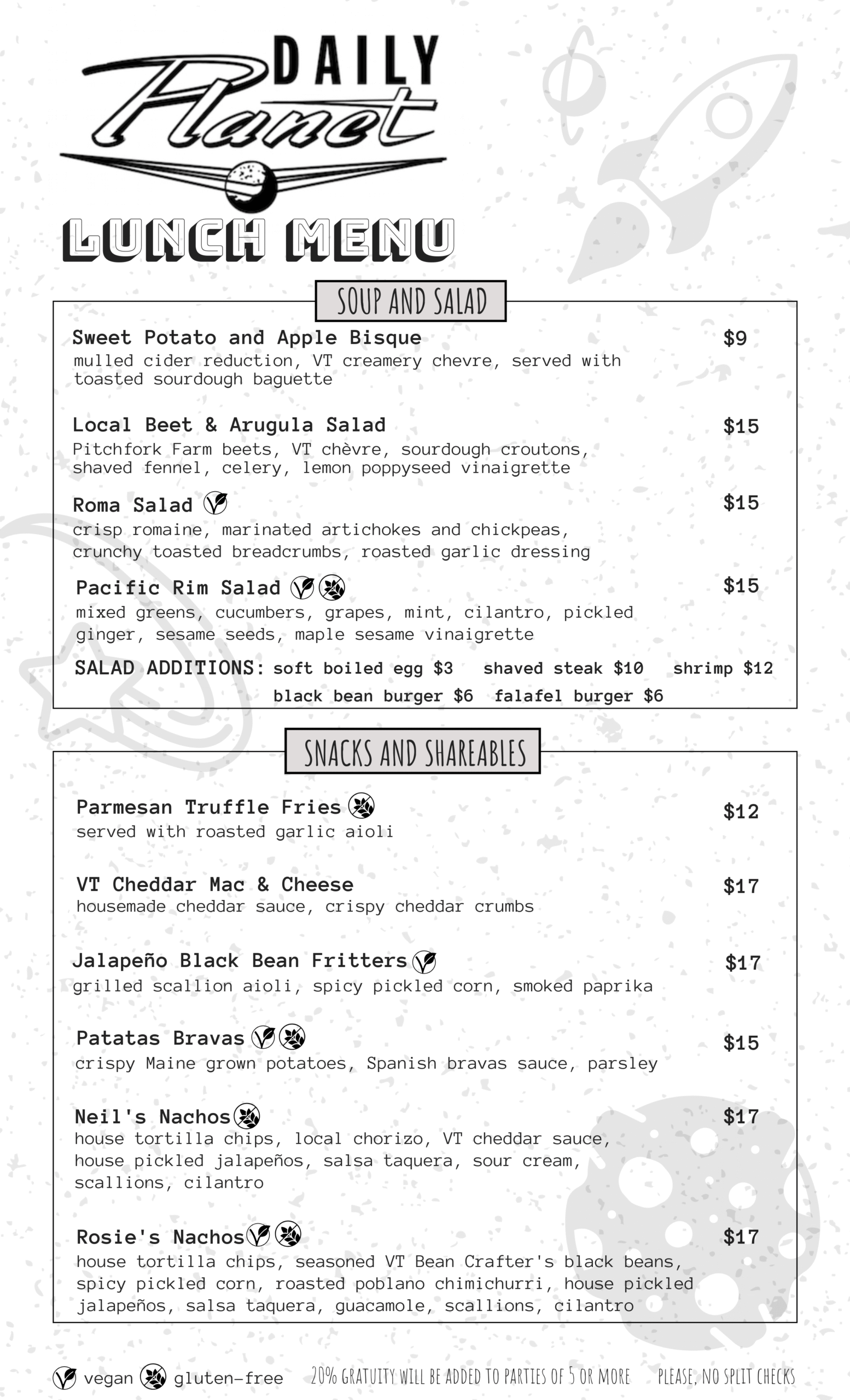 LUNCH MENU - served 11:30AM-3PM Saturdays + Sundays