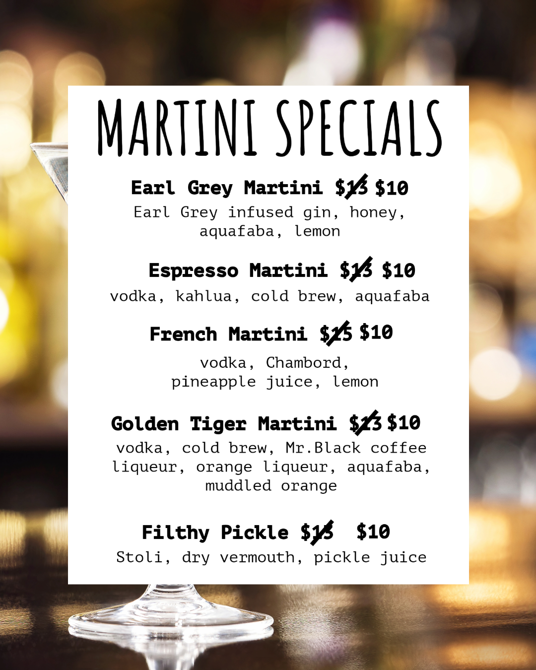 $10 Martini Specials Thursday 11.06.25